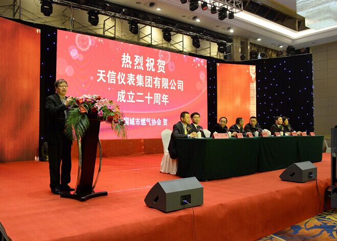 天信儀表集團(tuán)總裁范叔沙熱情洋溢地致辭,他帶領(lǐng)大家回顧了天信的發(fā)展歷程,經(jīng)過二十年發(fā)展,天信從風(fēng)雨飄搖到枝繁葉茂,從30多名員工到700多名員工,從單一市場到48個公司辦事處,從單一產(chǎn)品到12大系列上千種規(guī)格產(chǎn)品,從50萬資本到6.8億的固定資產(chǎn),從300萬元產(chǎn)值到5億產(chǎn)值,從單一產(chǎn)業(yè)到多業(yè)聯(lián)動,邁入了中國燃?xì)馕枧_的地域方陣,設(shè)計(jì)和制造了一系列具有自主產(chǎn)權(quán)、國家先進(jìn)的儀器儀表產(chǎn)品,先后獲得了30多項(xiàng)發(fā)明專利,參與了8項(xiàng)國家行業(yè)和標(biāo)準(zhǔn)的制定,同時(shí)還獲得了國家火炬計(jì)劃、國家高新技術(shù)企業(yè)、安全生產(chǎn)標(biāo)準(zhǔn)化二級企業(yè)全國五一勞動獎狀,浙江省重合同守信用、浙江省綠色企業(yè)、溫州市百強(qiáng)企業(yè)、溫州市活力和諧企業(yè)、蒼南縣模范工業(yè)企業(yè)等榮譽(yù)稱號。這一矯人的業(yè)績也向世人見證了天信的發(fā)展源于夢想、基于奮斗、重于堅(jiān)持,面對新環(huán)境,范總表示,天信將時(shí)刻保持謙虛務(wù)實(shí)的心態(tài),常懷感恩忠誠之情,更加團(tuán)結(jié)拼搏,共同推進(jìn)行業(yè)進(jìn)步。中國城市燃?xì)鈪f(xié)會遲國敬秘書長對天信儀表集團(tuán)的發(fā)展給予高度評價(jià),并對天信儀表集團(tuán)的發(fā)展寄予了殷切希望。他說,未來的發(fā)展,將為儀表計(jì)量行業(yè)提供一個契機(jī),希望天信快速地適應(yīng)市場變化,繼續(xù)穩(wěn)居行業(yè)龍頭,最后他預(yù)祝天信在未來發(fā)展過程中事業(yè)繁榮昌盛,合作伙伴取得重大成功,員工們身體健康、事業(yè)興旺、工作愉快!